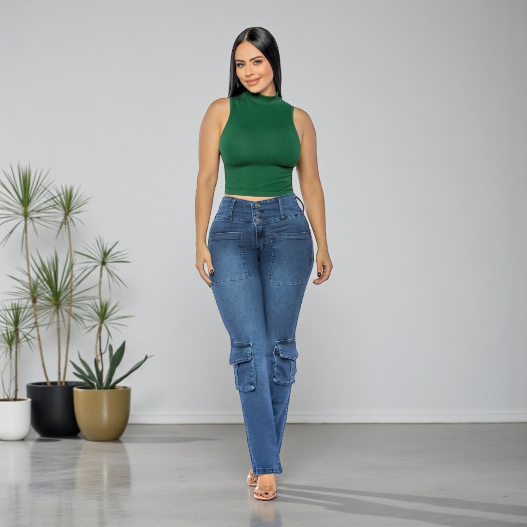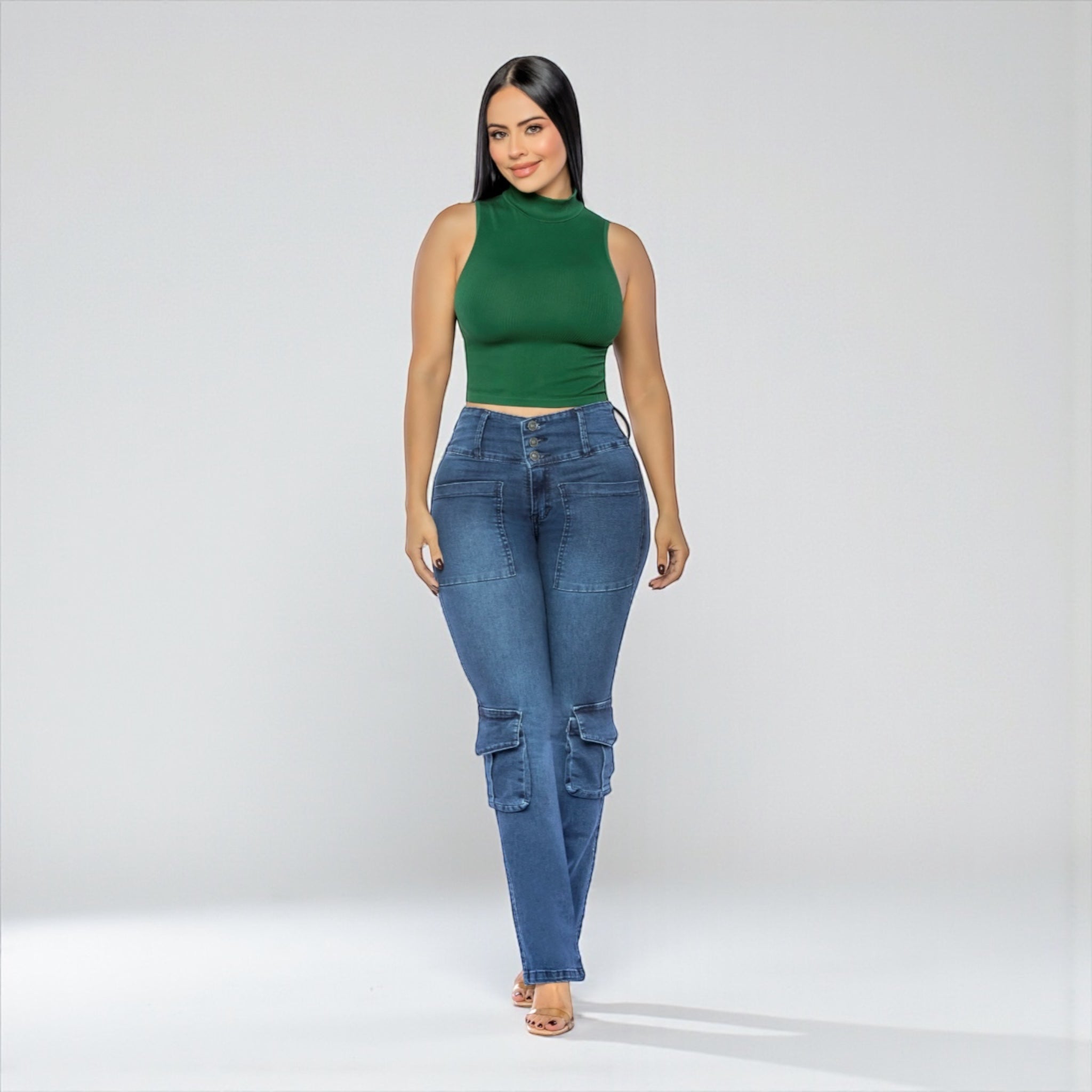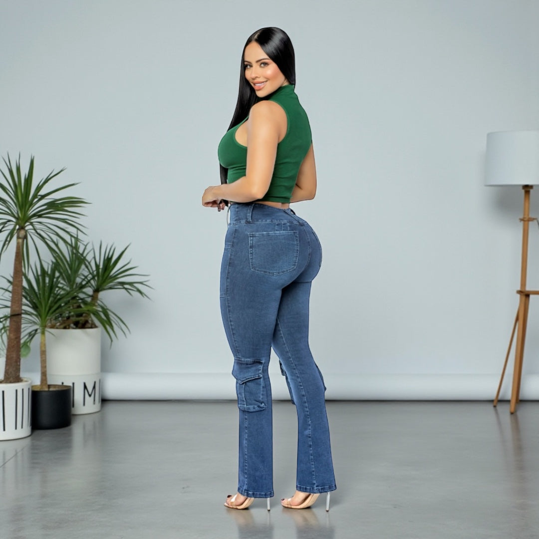 Introducing our Mis Divas Colombian Cargo Lift Jeans, an exclusive piece from the Mis Divas Colombian Signature Jeans collection. Made with premium stretch denim and authentic Colombian shaping technology, these jeans contour the waist, lift the hips, and elongate the legs for a naturally enhanced silhouette.