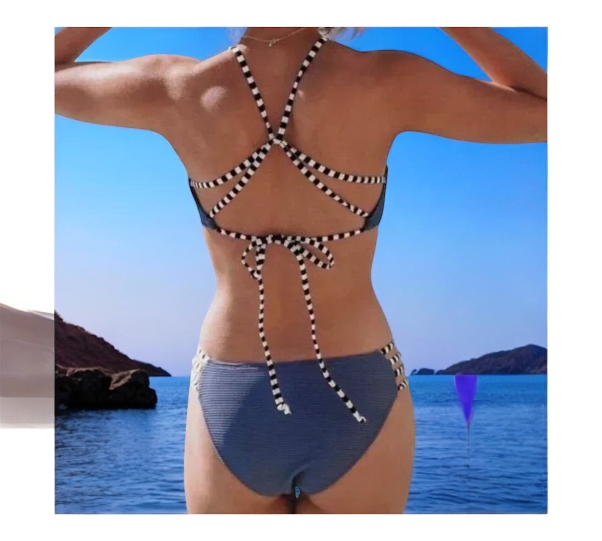 Upgrade your summer wardrobe with this blue high cut bikini set designed for a clean and modern look.