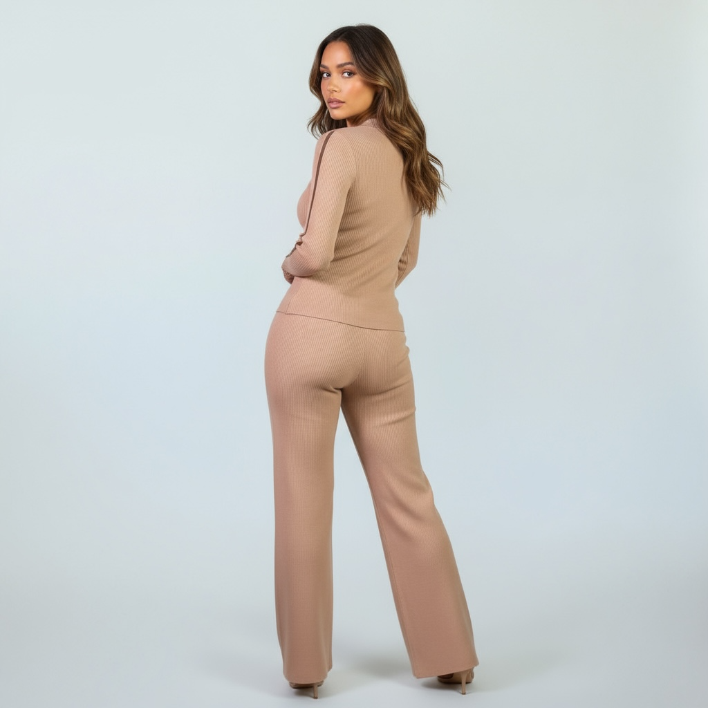 Diva Luxe Knit Set – Camel Ribbed Two-Piece Outfit