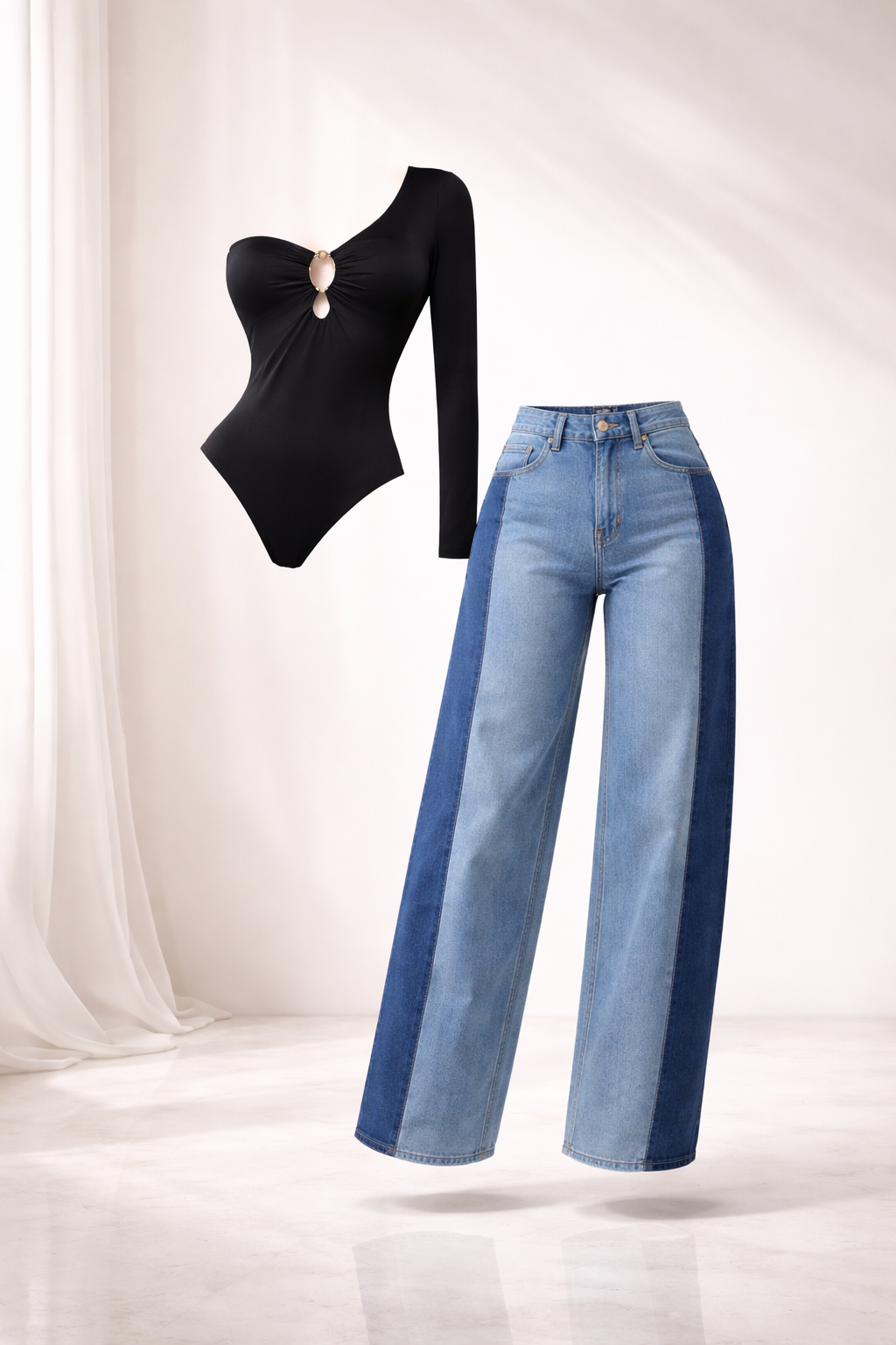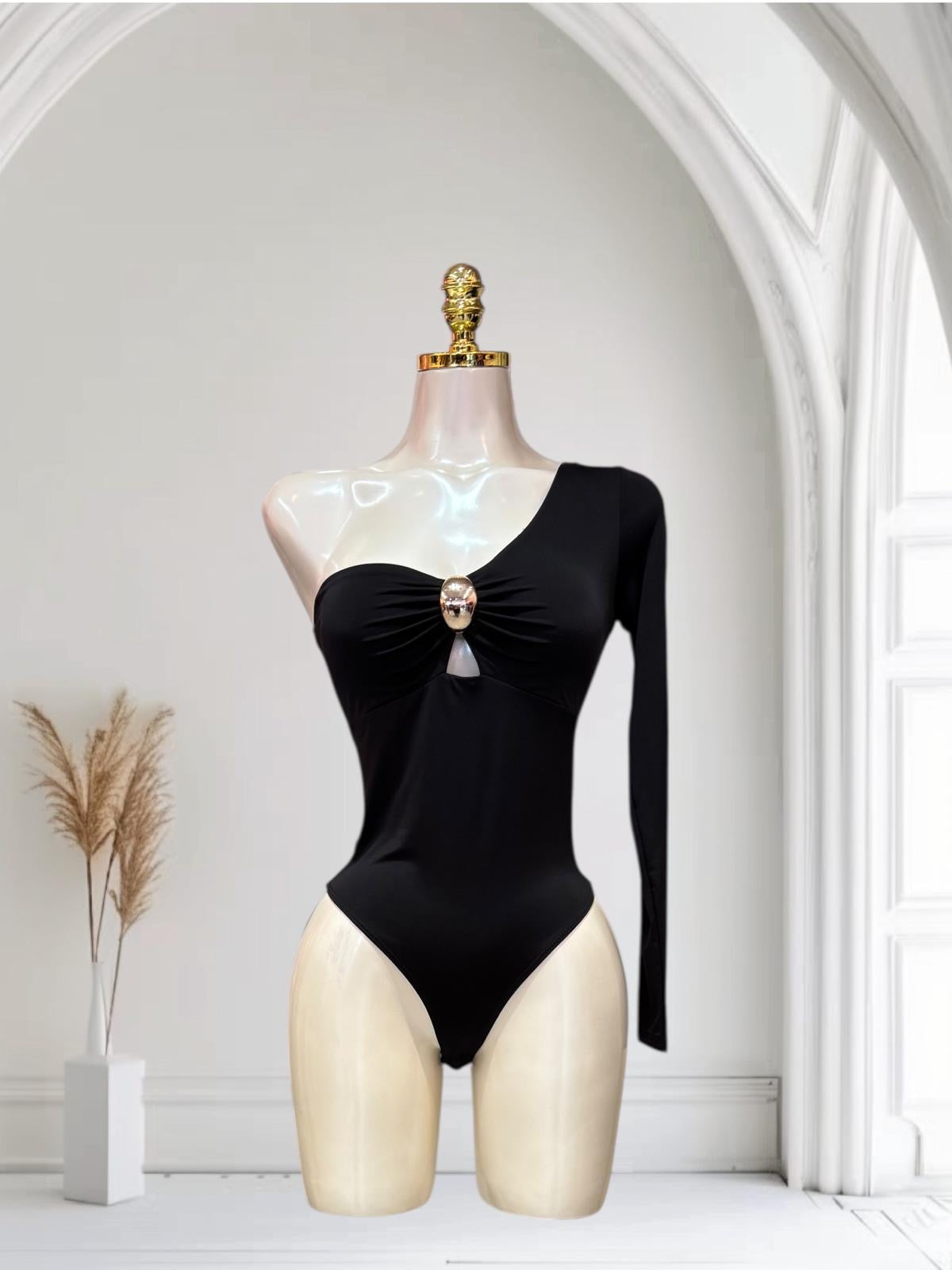 Elevate your silhouette with our One-Shoulder Luxury Black Bodysuit from Mis Divas Fashion. The gold statement detail at the bust, asymmetric neckline, and sleek fit deliver elegance and a bold Diva attitude. Perfect for pairing with high-waist jeans or luxury outfits, this piece transitions seamlessly from day to night. A must-have statement piece for your wardrobe.