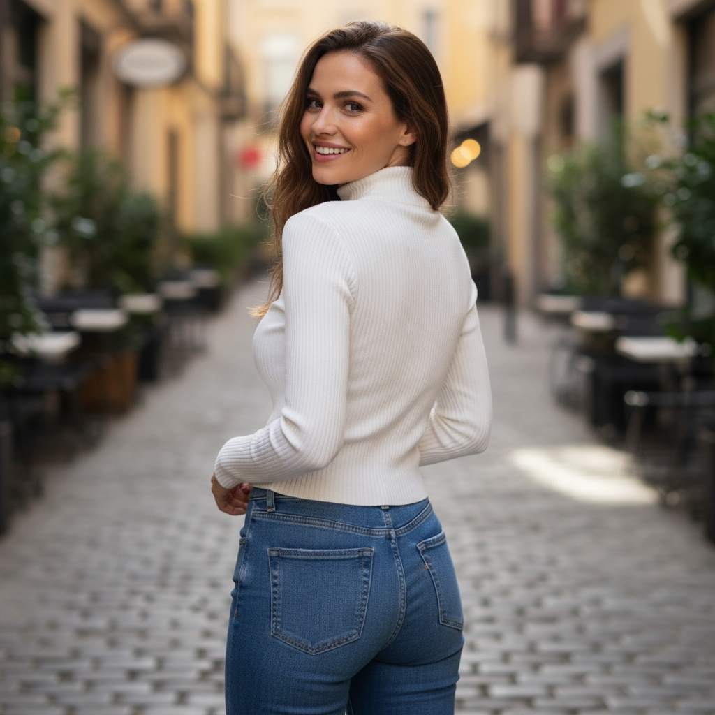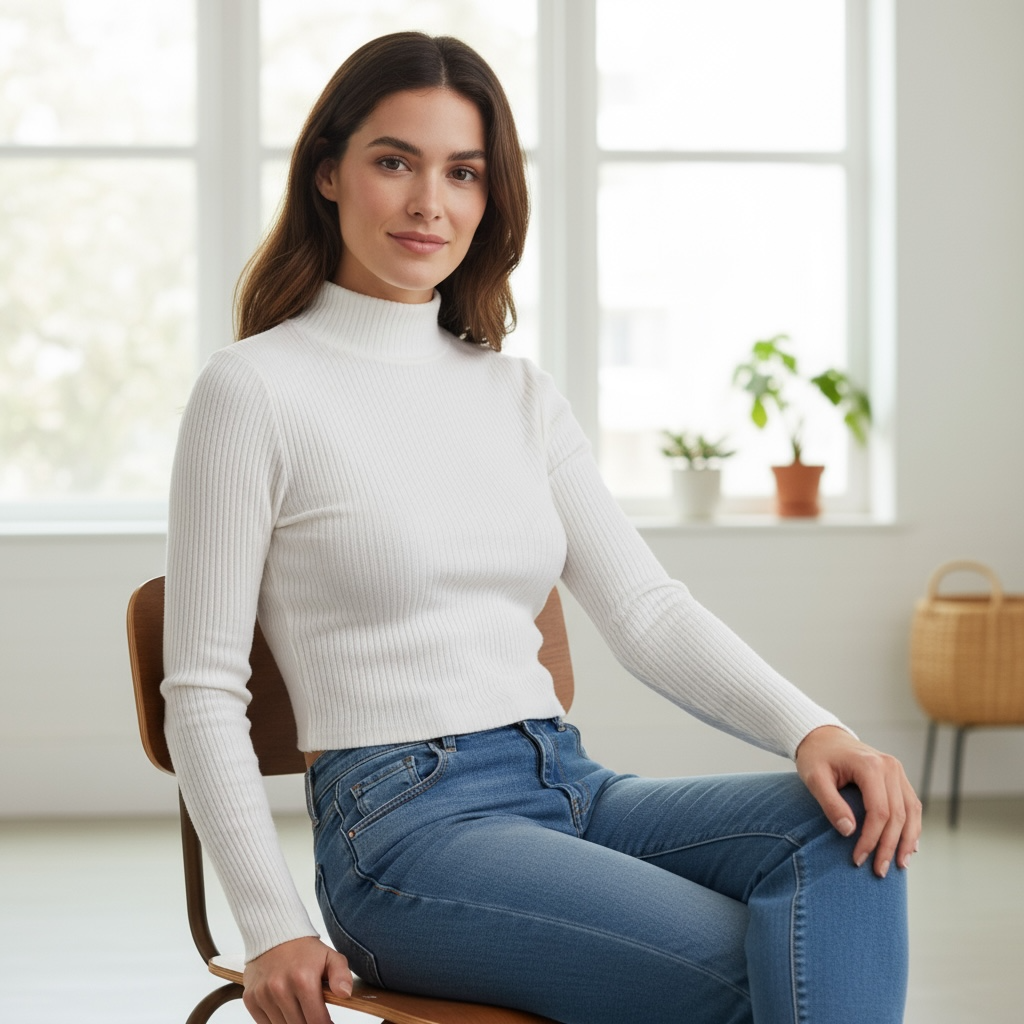 The D.I.V.A. Soft Essential Top brings timeless elegance to your everyday looks. Crafted from soft ribbed stretch fabric, this piece hugs your body with the perfect balance of comfort and sophistication.