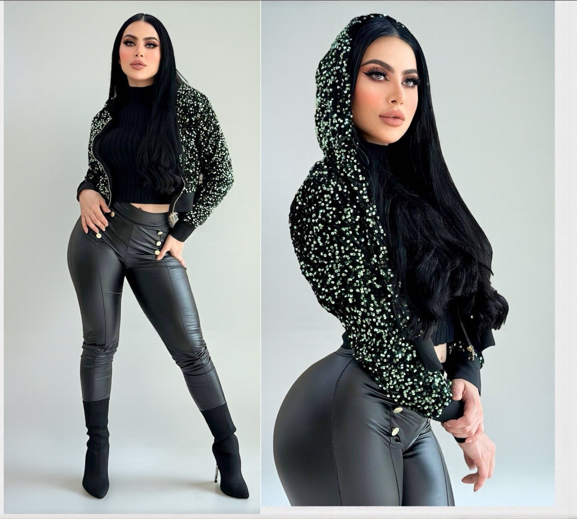 Our Diva Sequin Hoodie Jacket is a cropped sequin jacket with a full hood, designed to reflect light beautifully and elevate any outfit. Modern, flattering and easy to style with faux leather, leggings, jeans or classic basics.