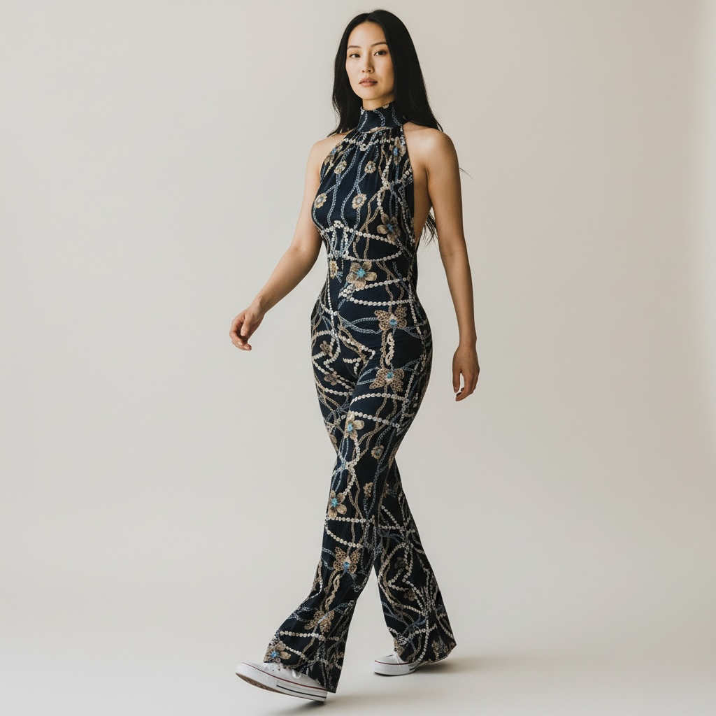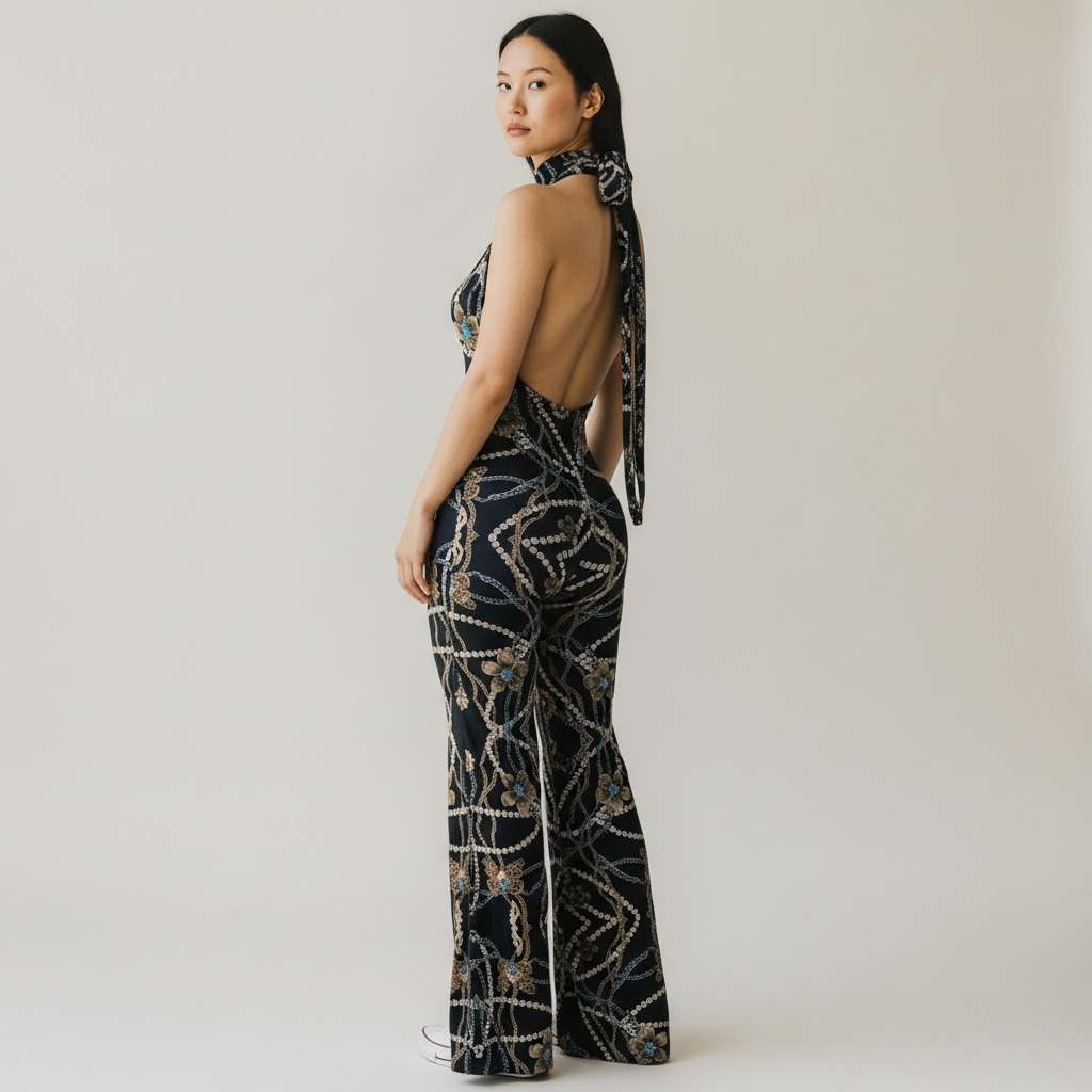 Featuring an open-back halter silhouette and a luxury pearl-chain print, it’s perfect for fashion-forward Divas who love comfort and glam.