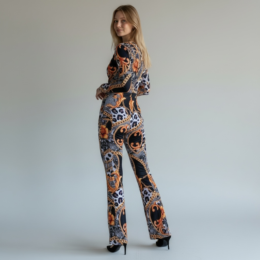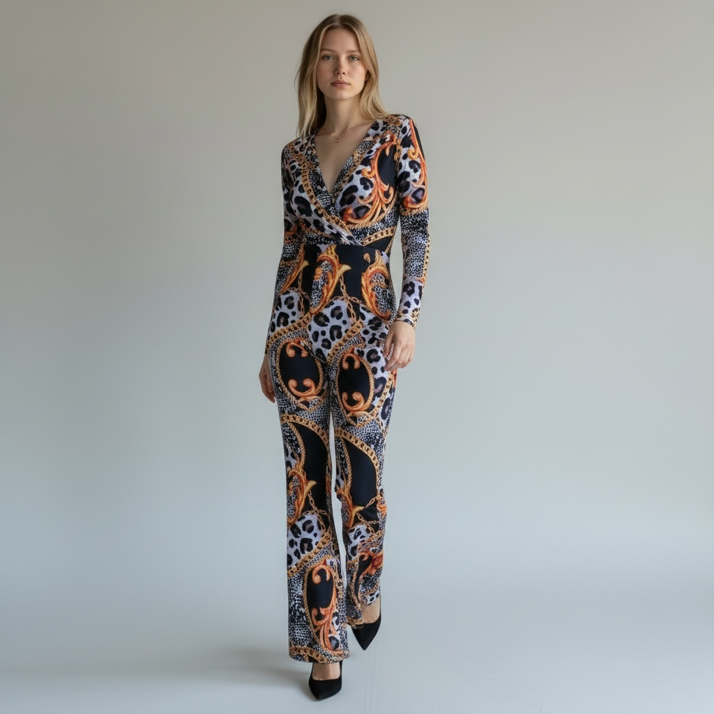 A stunning jumpsuit featuring modern baroque style and an elegant animal print that instantly enhances your silhouette. Made with premium stretch fabric for comfort and a sculpted fit. Perfect for dinners, events, and high-impact looks.