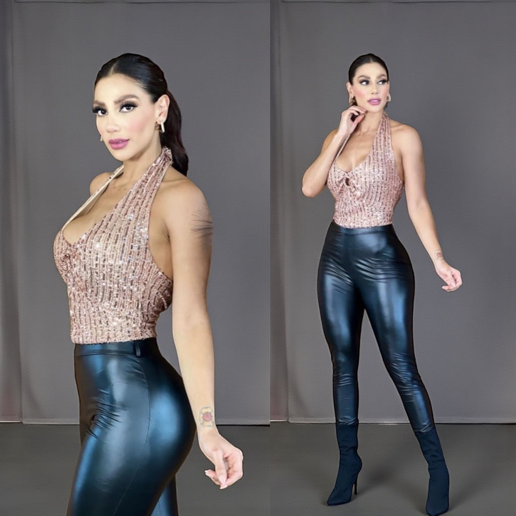 Mis Divas Bling Bling Collection – Diva Sequin Halter Top – Rose Gold